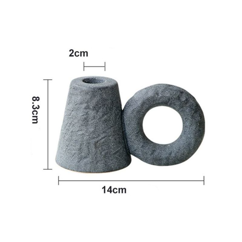 This artisanal ceramic candleholder features a matte, snow-glaze texture, and a large ring handle.